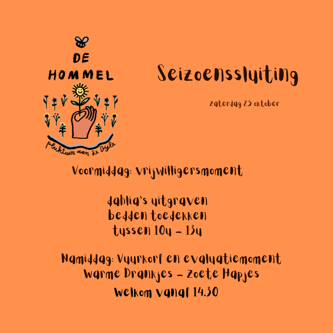 Wij sluiten het seizoen graag samen met jullie af: vrijwilligers welkom voor de laatste klusjes in de voormiddag, en in de namiddag is iedereen welkom voor een afsluitende activiteit: een laatste samenkomst met een hapje en drankje, waar we ook dee tijd nemen om even terug te blikken op het seizoen.